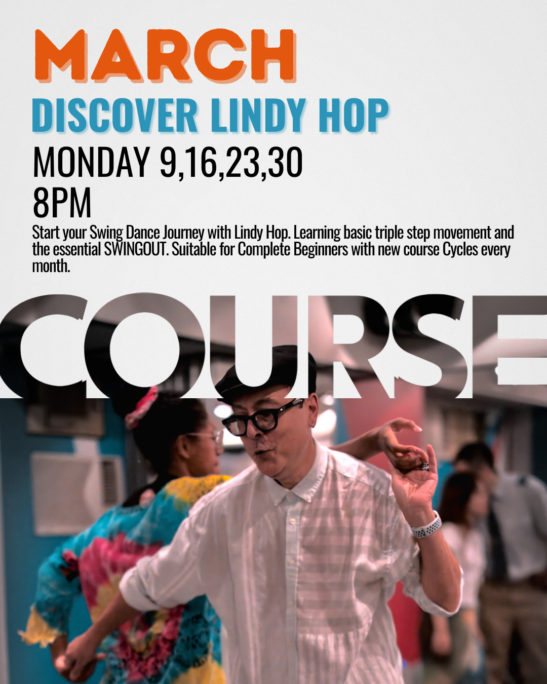 Either is a great place to start Swing Dancing and we use both styles on the Social Dance Floor. We alternate course cycles each month so you can do 8 weeks in a row as a foundation to your Swing dancing. Or if you are really keen, take both our Monday and Sunday courses.